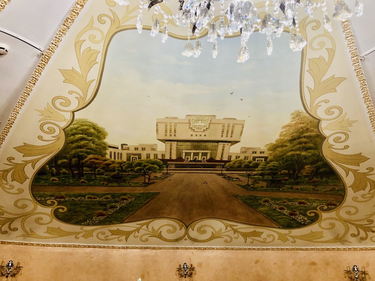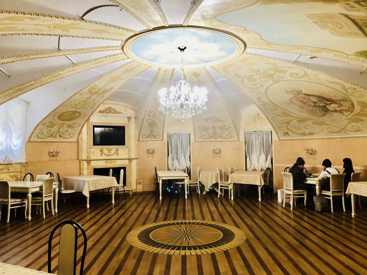 △食堂に続くホールには、モスクワ大学の礎を築いた偉大な学者ロモノーソフの肖像や大学を象徴する建物が装飾的に描かれていました。日々の学生生活の中に、大学の歴史と誇りが静かに息づいています。
