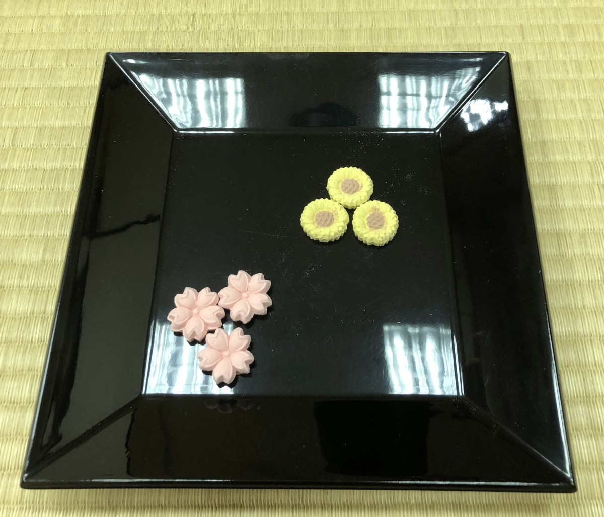 △特製お干菓子も、桜とひまわり!冬のイメージのロシアですが、実は国を象徴する花はひまわりです。ロシアではひまわりの種をおやつのように食べ、スーパーではひまわり油が最も一般的な食用油として並びます。ソフィア・ローレン主演の仏ソ合作映画『ひまわり』もありましたね。