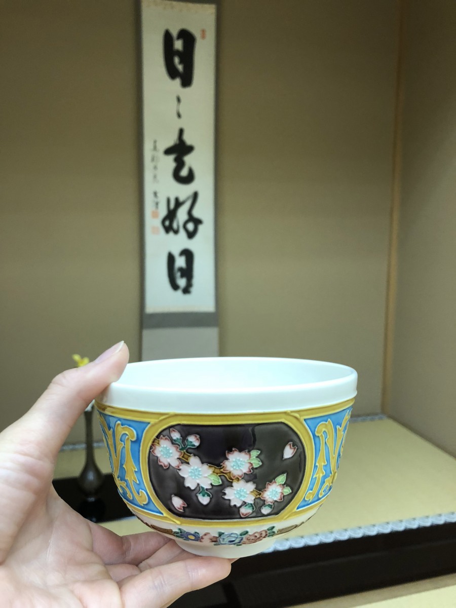 △『清露庵』では、「ロシアにおける日本年」のために特別に作られたという茶碗でも一服いただきました。桜とひまわりが描かれた器でいただく一服は、まさに日露友好の象徴でした。