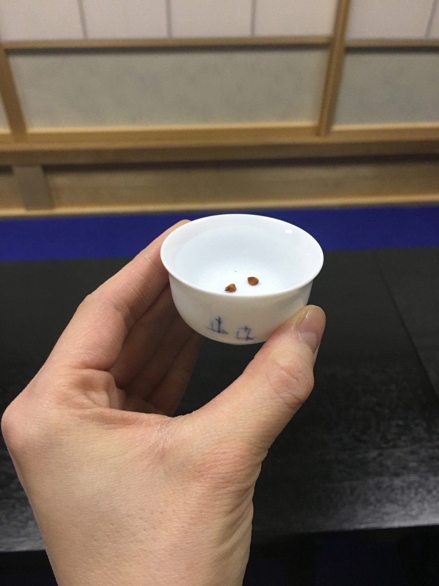 △茶室に入る前、待合で温かい飲み物をいただき心を整えます。